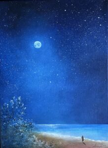 Lyset lander på havets kyst 24X18 cm Olie 1.600 kr.